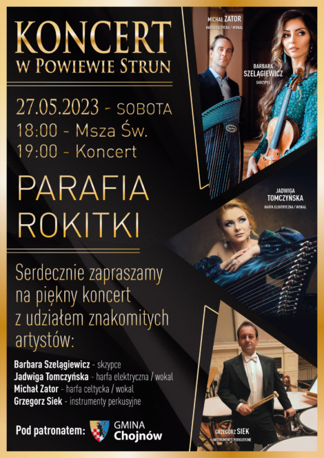 Ksiądz proboszcz Tomasz Kwiecień Parafii pw. Matki Bożej Częstochowskiej w Rokitkach wraz z przewodniczącym Rady Parafialnej Panem Andrzejem Kupczykiem serdecznie zapraszają na piękny majowy koncert „W powiewie strun”. W koncercie…
